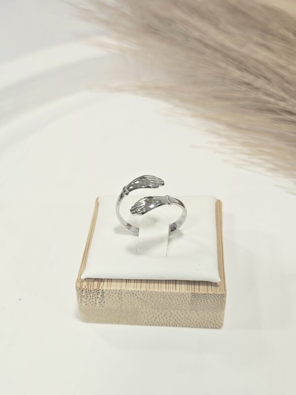 Ανακαλύψτε την ομορφιά της απλότητας με αυτό το ασημένιο δαχτυλίδι, που διαθέτει δύο χέρια σε σχέδιο αγκαλιάς. Το κομψό και διαχρονικό σχέδιο συμβολίζει τη ζεστασιά και την ενότητα και είναι ιδανικό για να εκφράσετε την αγάπη και την σύνδεση.
