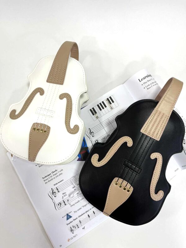 Αναδείξτε το μουσικό σας πάθος με αυτή τη μοναδική τσάντα σε σχήμα βιολιού! Φτιαγμένη από ανθεκτικό συνθετικό δέρμα, με προσεγμένες λεπτομέρειες που θυμίζουν πραγματικό όργανο, προσφέρει έναν ιδιαίτερο και vintage χαρακτήρα σε κάθε εμφάνιση.
