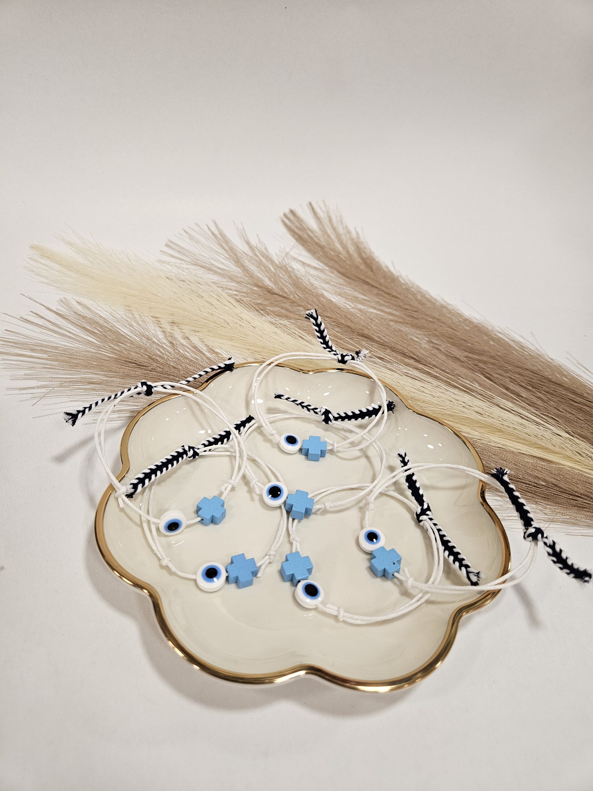 Μαρτυρικό Βραχιόλι Ματάκι & Γαλάζιος Σταυρός – Χειροποίητο Σετ 50 τμχ
