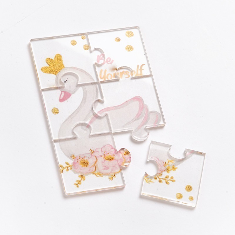Puzzle 6 τεμαχίων με print παράσταση σε plexiglass διάφανο.Η παράσταση απεικονίζει τον κύκνο.Στην τιμή περιλαμβάνεται το κουτάκι δώρου που είναι τοποθετημένο το puzzle.