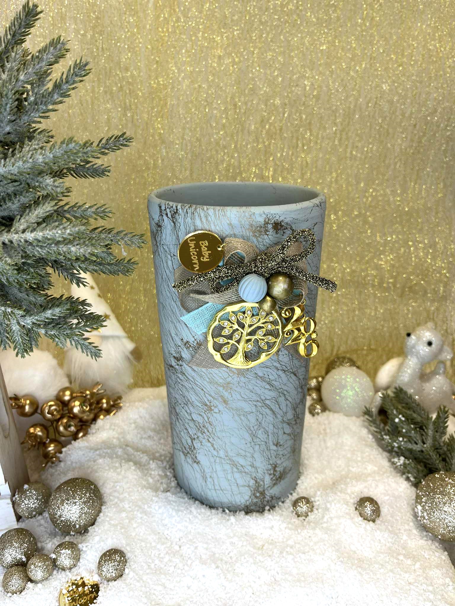 Φέρε τη μαγεία των Χριστουγέννων στο χώρο σου με αυτό το υπέροχο χειροποίητο κεραμικό βάζο από την ομάδα της Baby Unicorn.