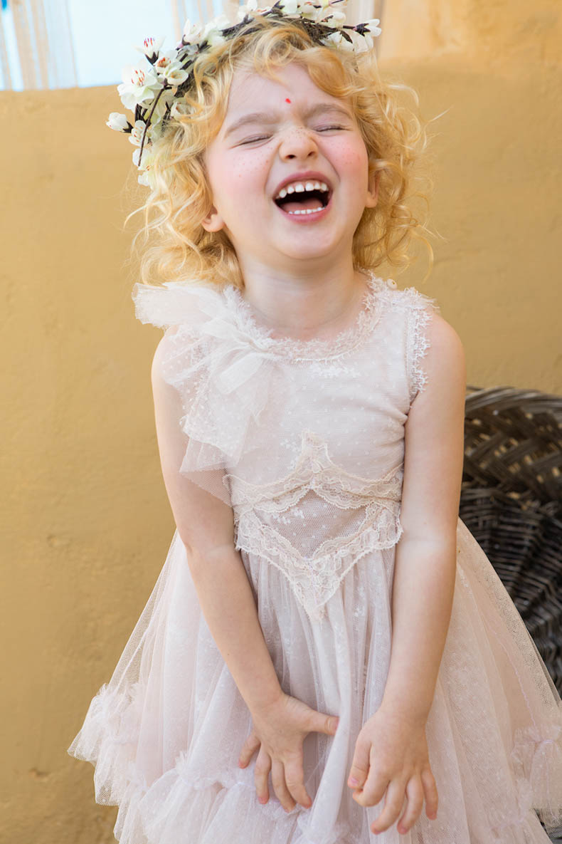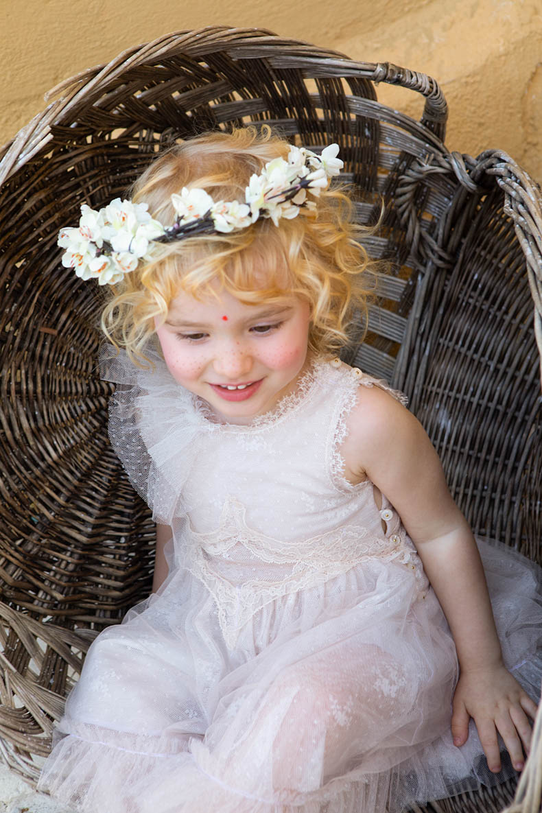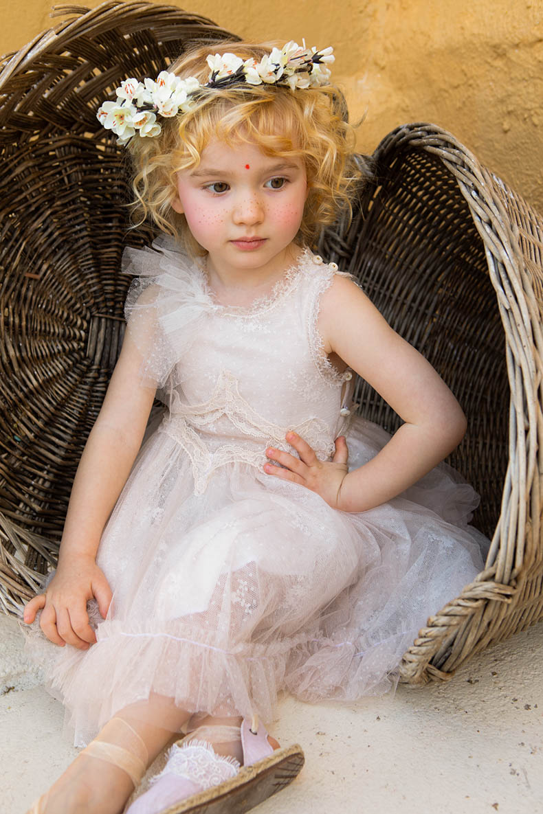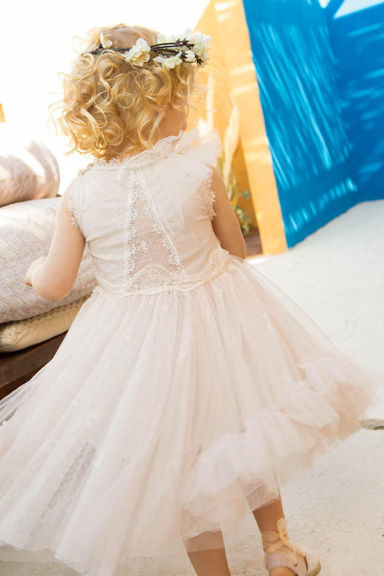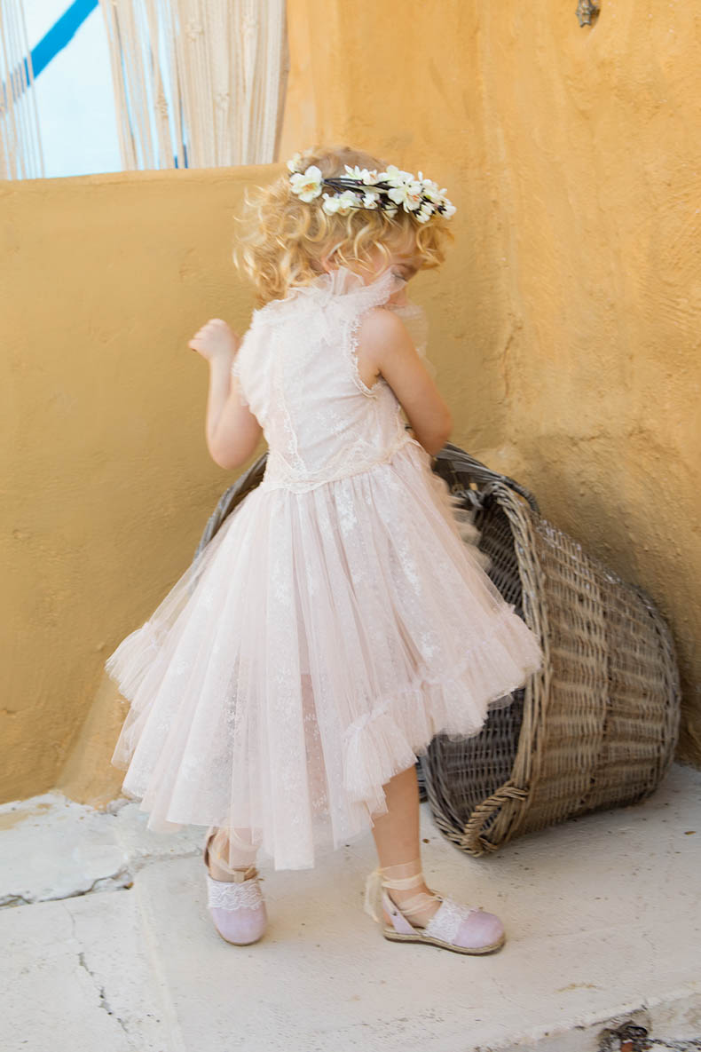 Η Artemis ειναι ενα nude ασσυμετρο ιδιαιτερο φορεμα με εντυπωσιακη διαφανεια στην μεση και παιχνιδιαρικα βολαν στο τελειωμα. Τα εξαιρετικης ποιοτητας υλικα το κανουν ιδανικο για το μωρακι σας περιλαμβανει στεκα για το κεφαλι.