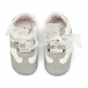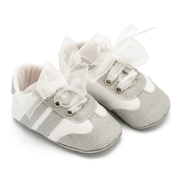 Δερμάτινα δετά sneakers με κορδέλα οργάντζα σε γκρι χρώμα. Πριν ολοκληρώσετε την παραγγελία σας, συμβουλευτείτε το μεγεθολόγιο στην επόμενη εικόνα. Όλα τα παιδικά/βαπτιστικά παπούτσια BABYWALKER είναι χειροποίητα και κατασκευάζονται με τέχνη και μαστοριά. Μετά από αλλεπάλληλους ποιοτικούς ελέγχους, τα παπουτσάκια είναι έτοιμα να φορεθούν από τους μικρούς fashionistas σε κάθε γωνιά του κόσμου!