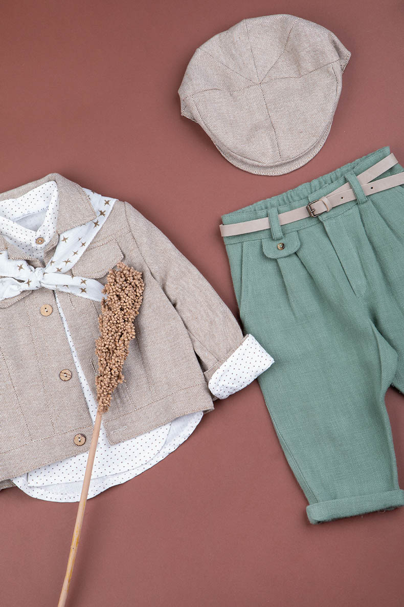 Ο Irodotos είναι ένας μοντέρνος συνδυασμός που αποτελείται από μπεζ μπουφάν με εκρού βαμβακερό πουκάμισο με printed σχεδιάκι και μέντα παντελόνι με πιέτες. Απογειώνεται με εκρού φουλάρι με μπεζ αστεράκια, μπεζ ζώνη και μπεζ τραγιάσκα.