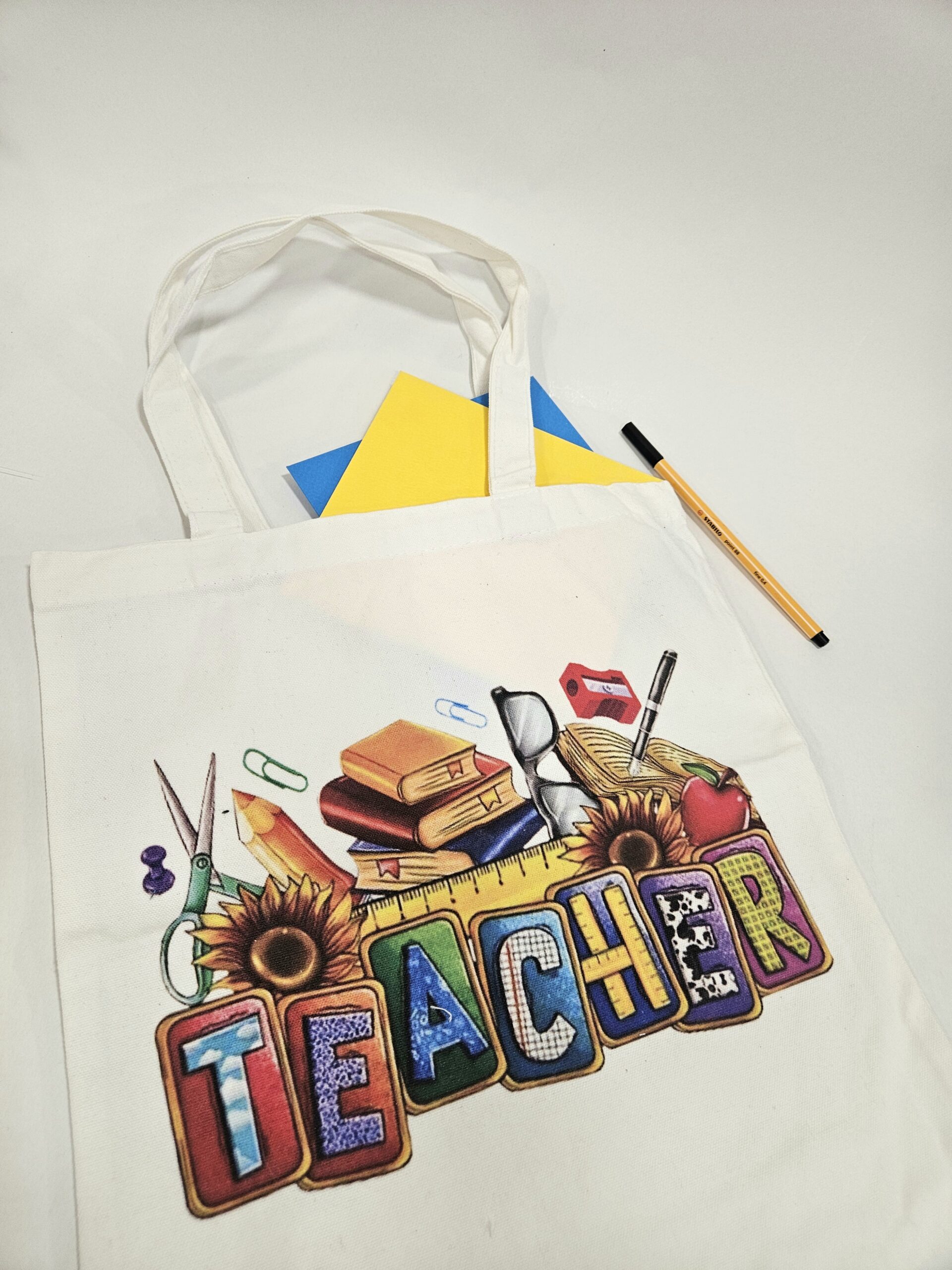 Η υφασμάτινη tote τσάντα με το τύπωμα “Teacher” είναι η τέλεια επιλογή για κάθε εκπαιδευτικό! Κατασκευασμένη από ανθεκτικό ύφασμα, πλένεται εύκολα και αποτελεί μια οικολογική επιλογή με στυλ.